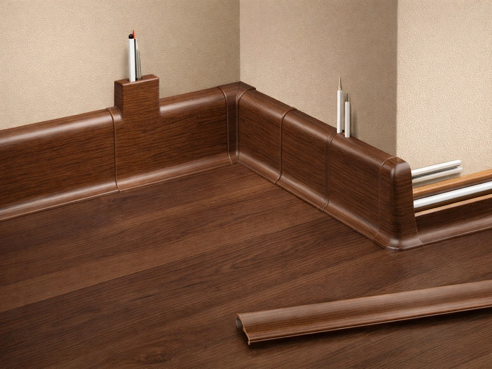 Плинтуса из массива мы подбираем строго под цвет пола – можно в тон, а можно использовать контрастный оттенок. Тут все зависит от особенностей интерьера и предпочтений хозяина. Однако следует помнить, что во влажном помещении плинтус из массива может коробиться и терять свою форму. Если вы планируете сложную отделку во влажных зонах, с монтажом лучше справится опытная бригада по ремонту квартир.