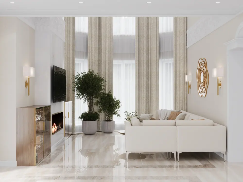 Большое зеркало в дизайне интерьера гостиной
