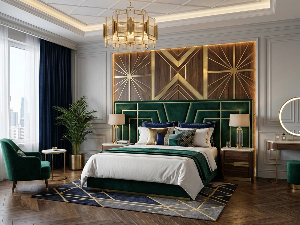 Дизайн проект спальни в стиле современное ар-деко