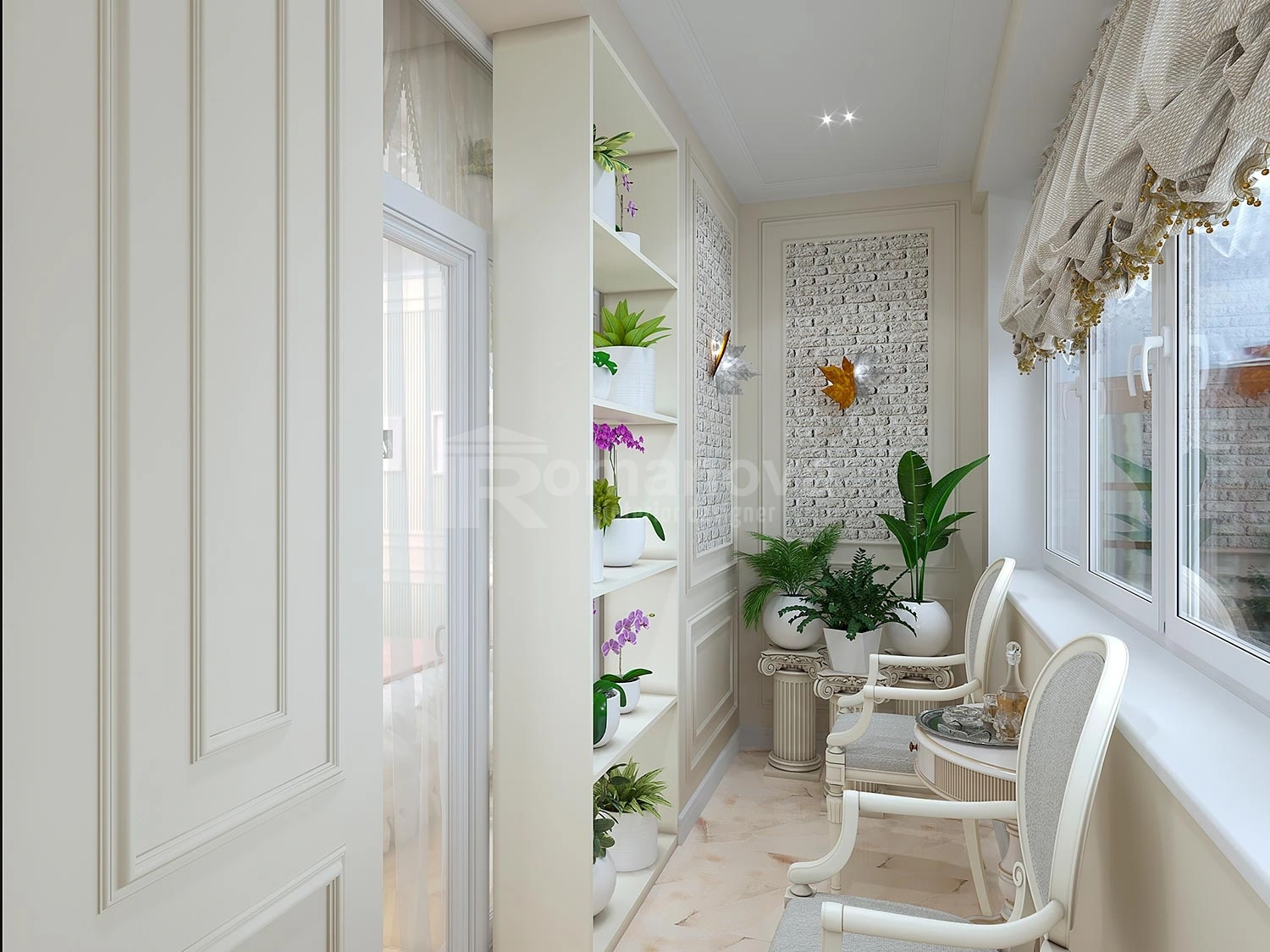 Дизайн интерьера балкона выполнен в классическом стиле. Дизайнер интерьера Ирина Романова, разработала дизайн-проект, полностью отвечающий всем пожеланиям хозяев дома, что очень их порадовало, что же именно применила для проекта дизайнер?