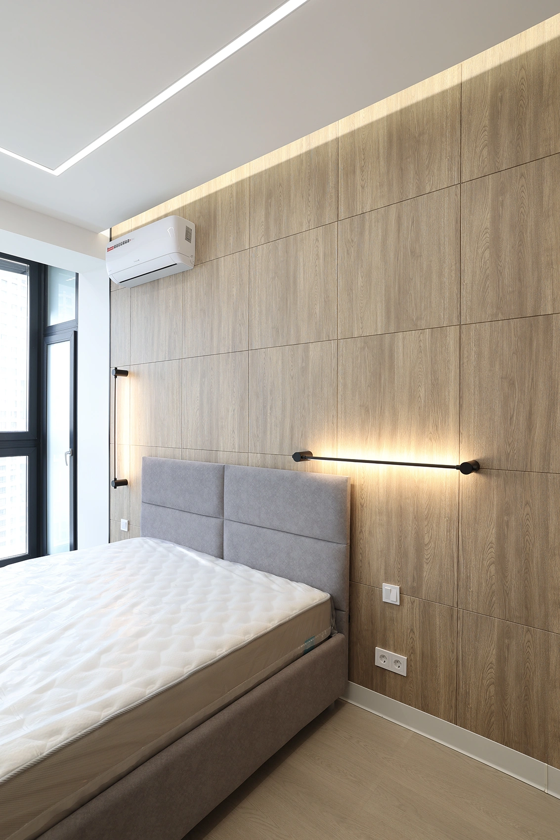 Дизайн интерьера выполнен в лёгком скандинавском стиле. Подобный стиль сейчас очень популярен за минималистичный дизайн и приятные цветовые сочетания, а также за визуальную уютную атмосферу.