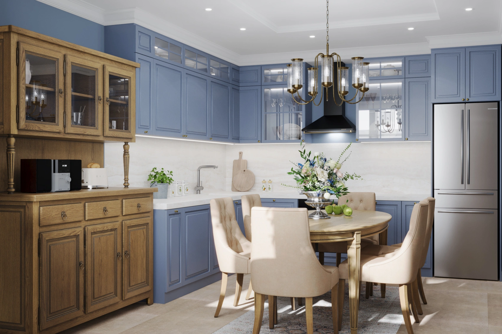 Кухонное пространство наполнено не только уютом, но и достаточно просторным местом для готовки, а также имеется большой обеденный стол для сбора не только всей большой семьи, но и многочисленных гостей.