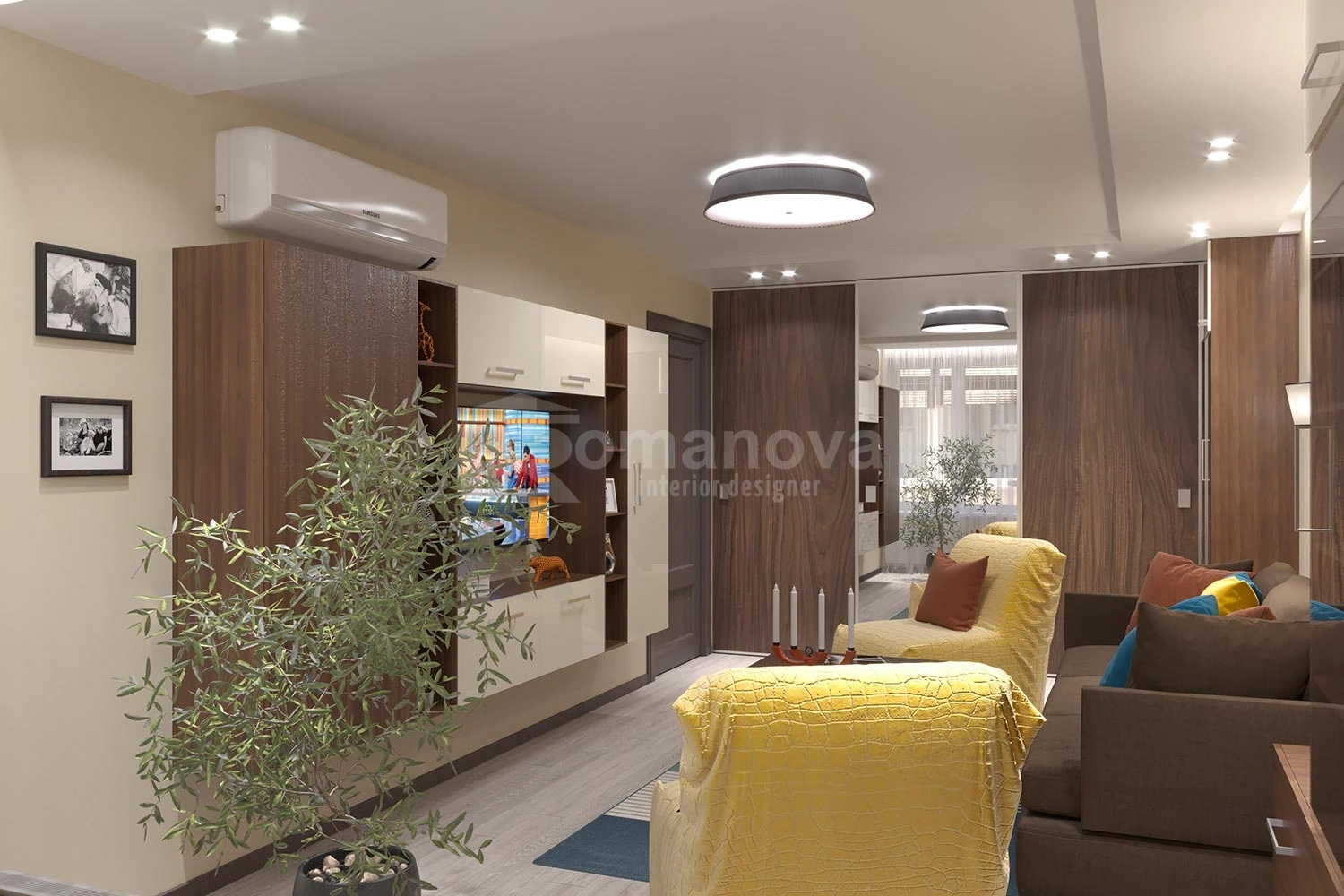 Хозяевами двухкомнатной квартиры в Сокольниках, являются молодая пара с двумя маленькими сыновьями. Очень скромная и интеллигентная пара. Приобретя несколько лет назад данные апартаменты, не знали, как правильно распорядиться всей площадью, поэтому несколько лет после покупки просто жили, работали и растили своих маленьких ребятишек. Но настал тот день, когда они решили, что пора обустраивать своё жилище, делать его функциональным, стильным, комфортным, светлым. С просьбой спроектировать дизайн-проект интерьера их квартиры, они обратились к дизайнеру интерьера Ирине Романовой. После всех выслушанных пожеланий от заказчиков было понятно, что ориентир для дизайн-проекта нужно «держать» в современном, лёгком и многофункциональном направлении.