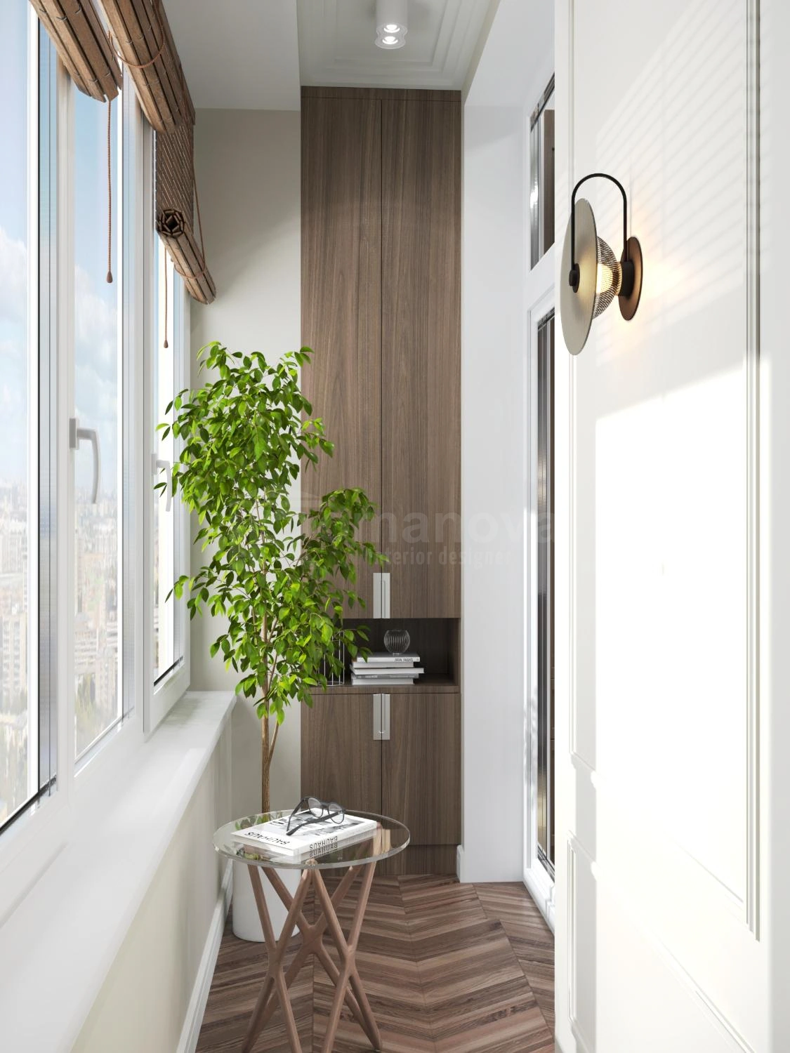 В квартире после спроектированного дизайн-проекта теперь имеются просторная прихожая, три гардеробных комнаты, две спальни, просторное помещение для кухни-гостиной, уютный балкончик, ванная комната и отдельный санузел.