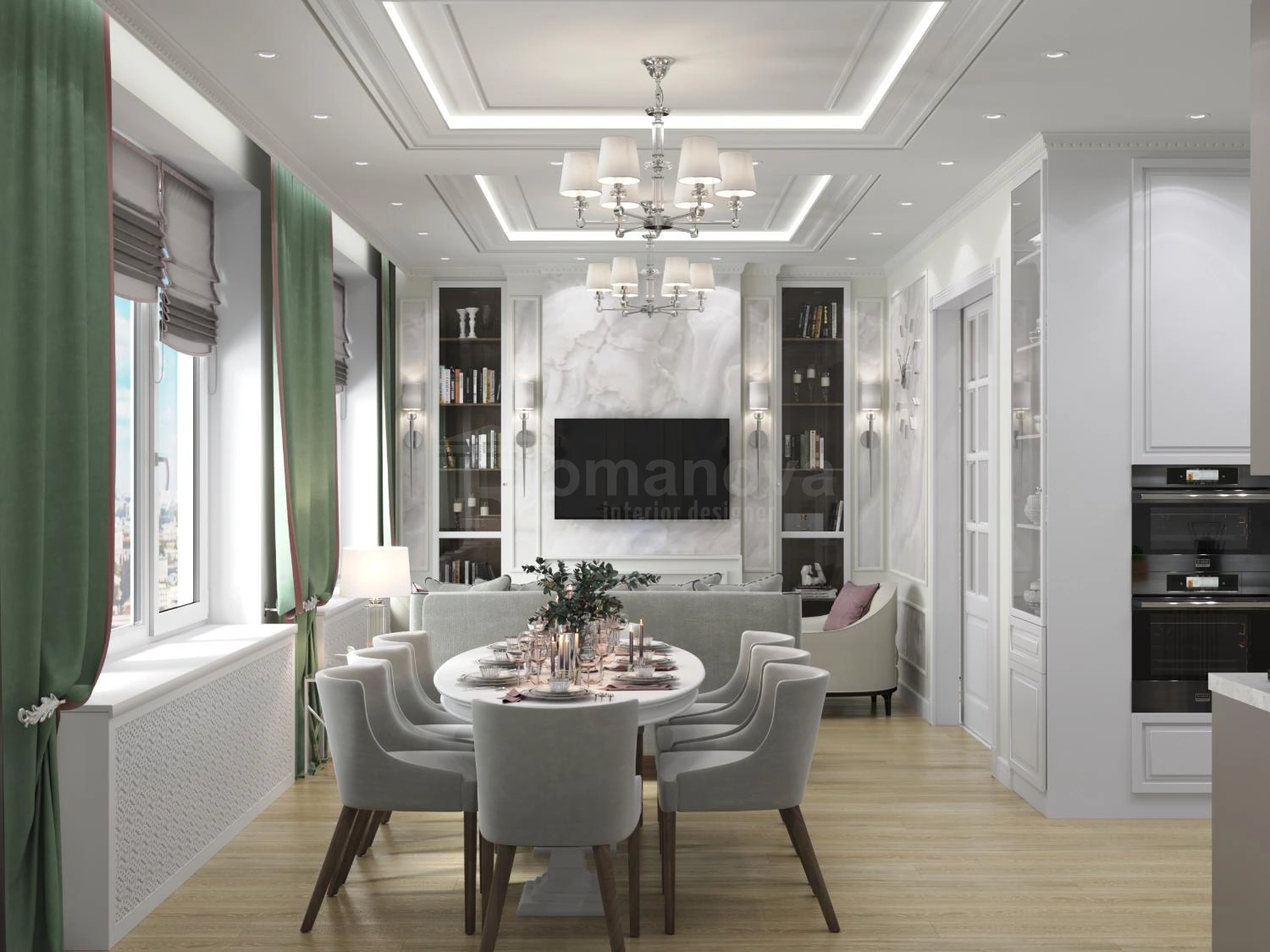 Интерьер трёхкомнатной квартиры в стиле неоклассика