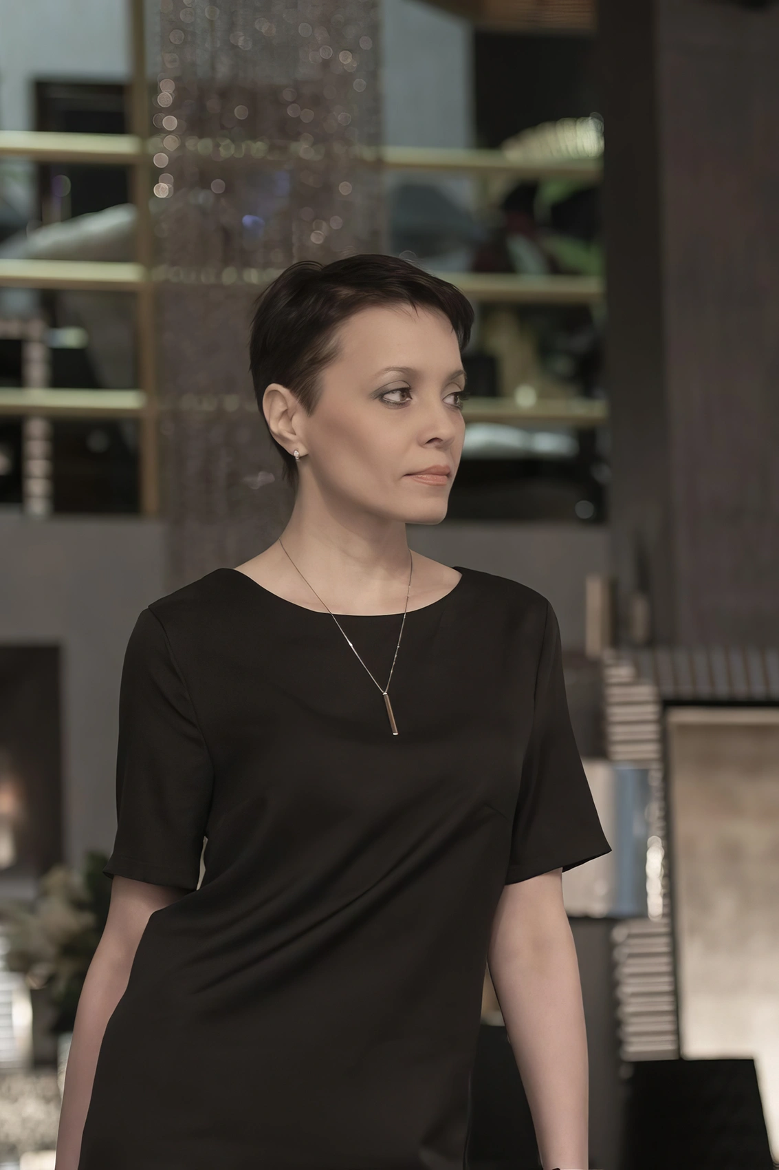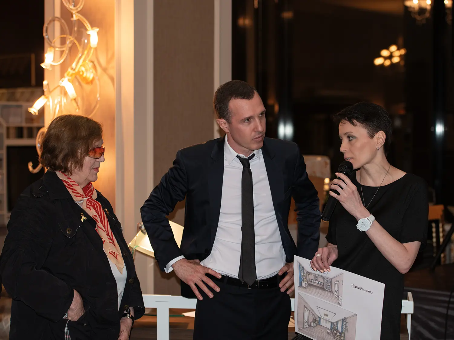 Дизайн-проект интерьера гостиной спроектирован дизайнером интерьера Ириной Романовой для Заслуженной актрисы РФ *Инны Николаевны Выходцевой. Актриса известна по ролям в кино: «Тихий Дон», «Москва слезам не верит», «Мёртвые души» и т. д. Проект был выполнен при организованной поддержки «Vito Pro» совместно с Благотворительным Фондом деятелей искусства «Артист» с использованием мебели, предоставленной Центром Дизайна «Театр Интерьера».