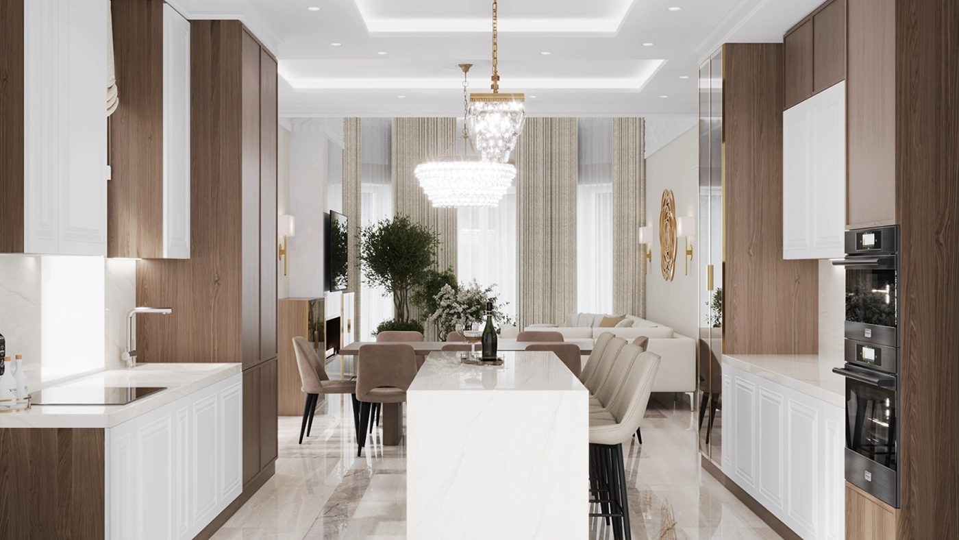 Эстетика парадной зоны: гостиная и кухня