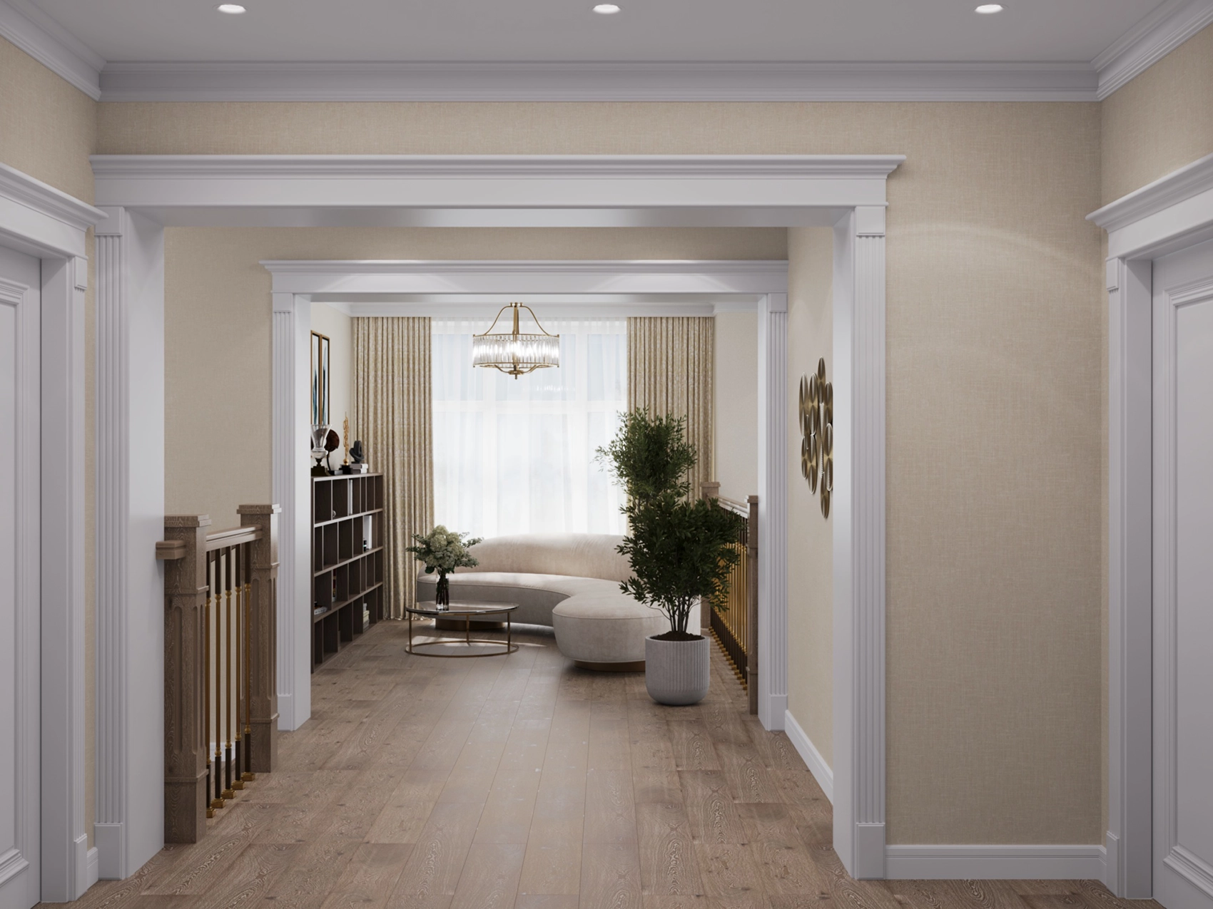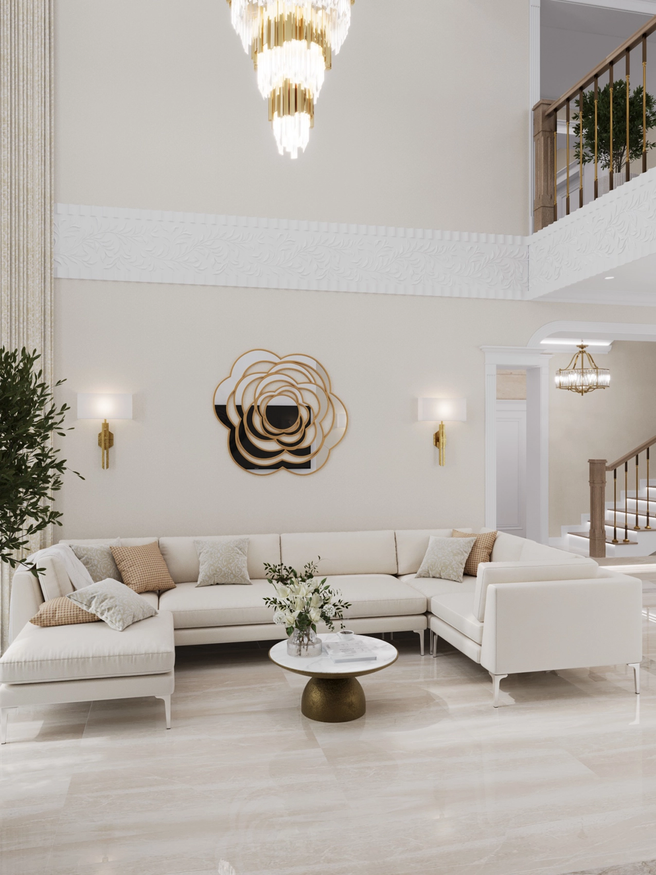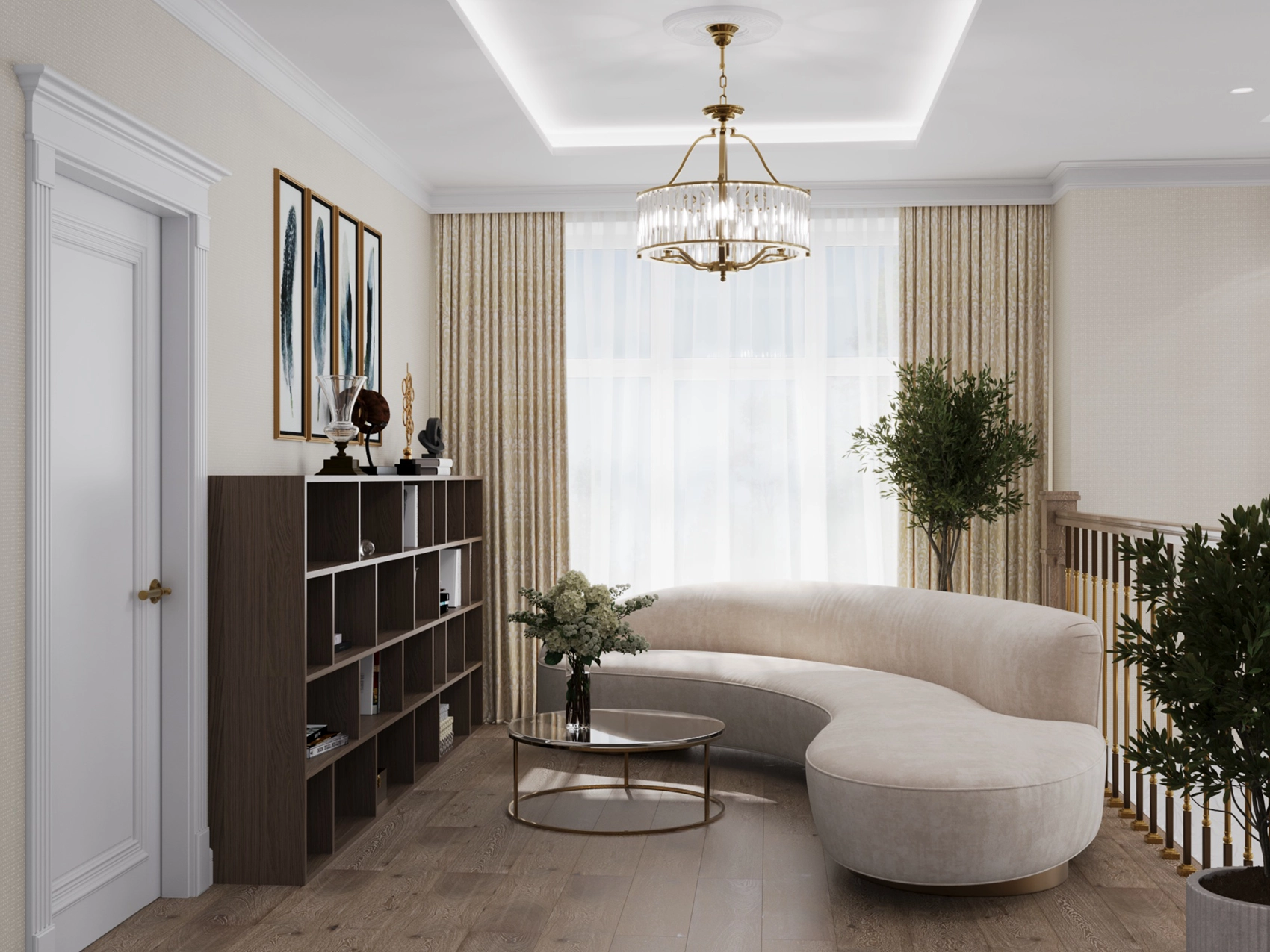 Современный интерьер двухэтажного дома с элементами модерна и ар-деко