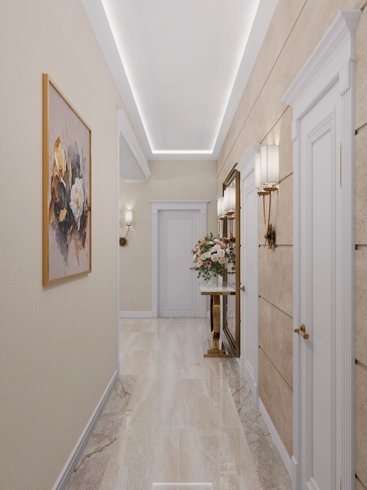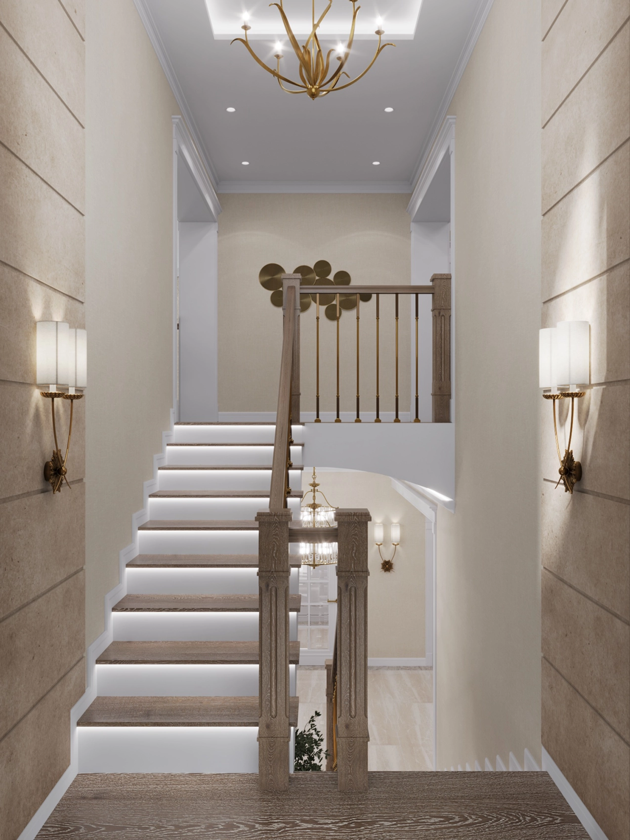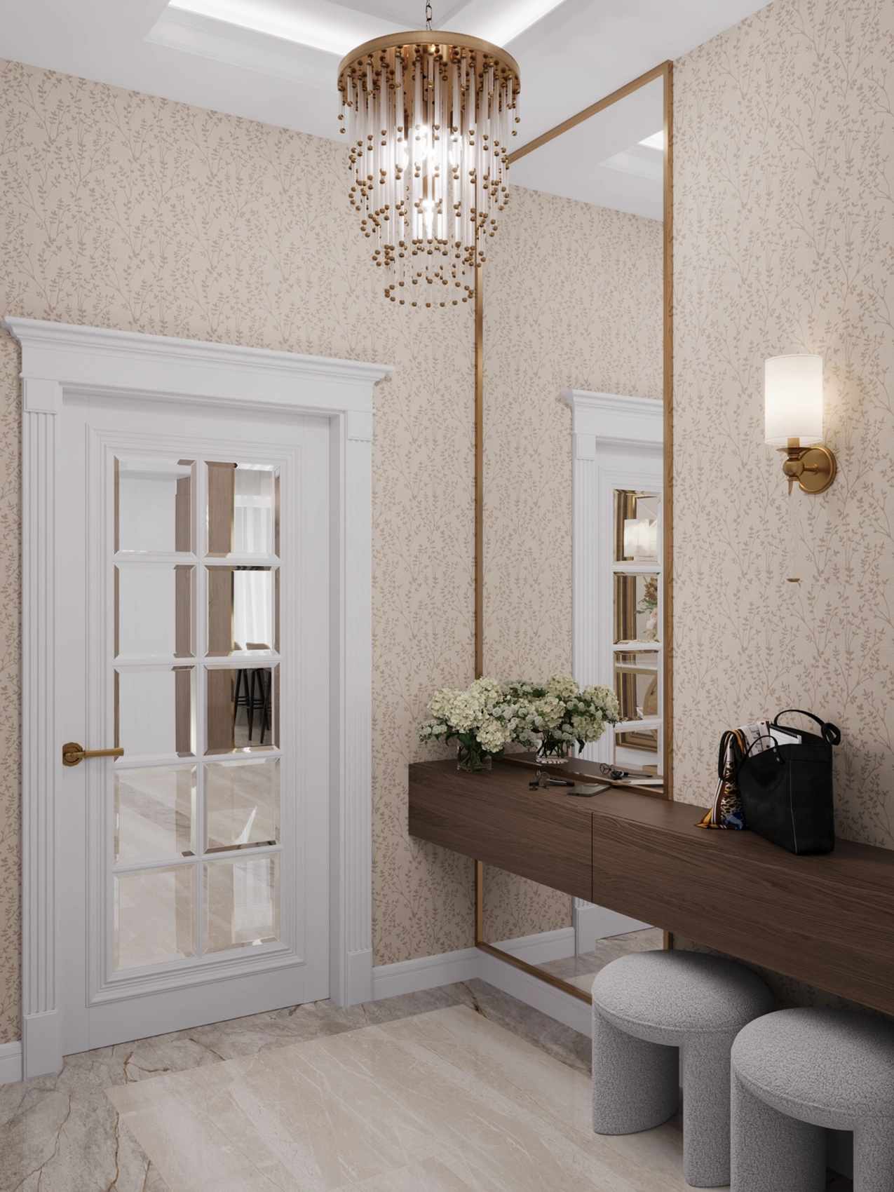 Современный интерьер двухэтажного дома с элементами модерна и ар-деко