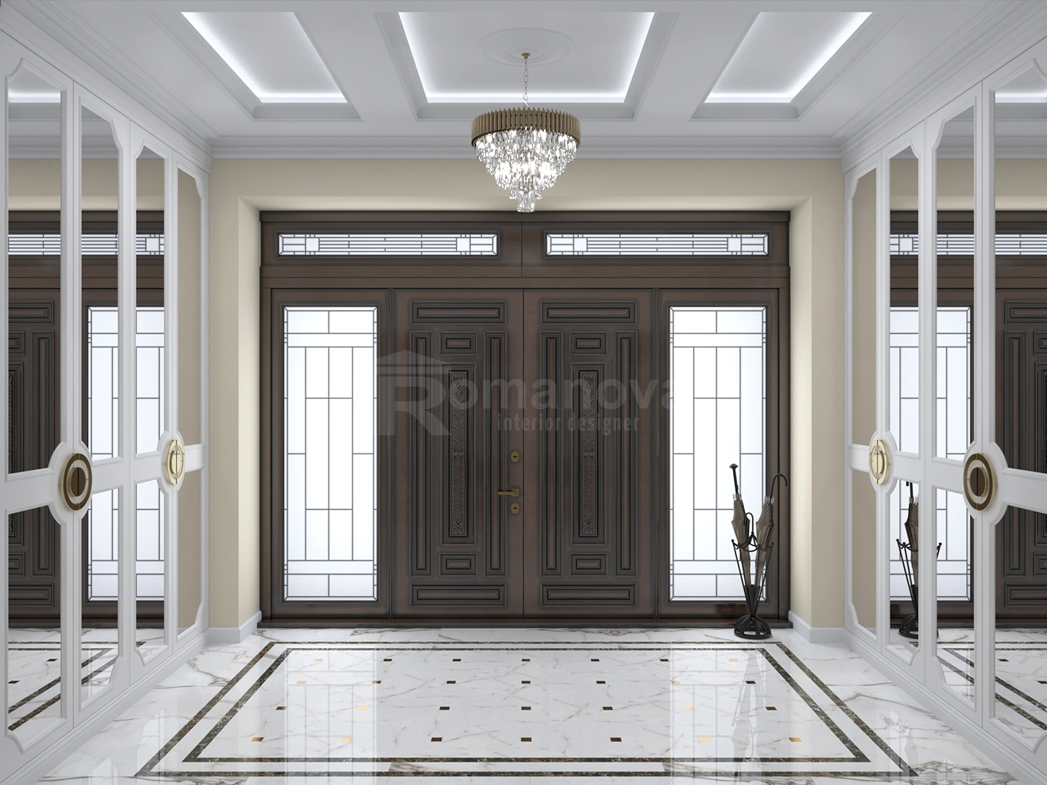 Дизайн-проект загородного дома, расположенный в элитном посёлке Подмосковья, разрабатывался для большой семьи. Семья состоит из разных возрастов. Хозяева этого красивого дома хотят не только жить в нём большой и дружной семьёй, но и приглашать много гостей, поэтому для них было важно при, разработки дизайн-проекта интерьера учесть не только пожелания каждого члена семьи, но и учесть все нюансы, связанные с принятием гостей. Дом имеет хорошую квадратуру, которая предполагает распланировать не только основные помещения такие как: прихожая, гостиная, кухня, спальни, ванные комнаты, но и такие помещения как: кабинет, тренажёрный зал, детские комнаты, а также, несколько гардеробных комнат.