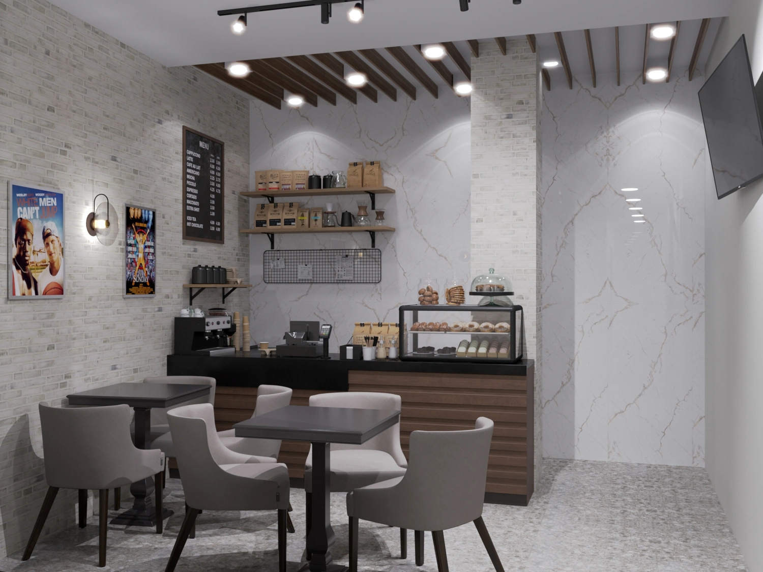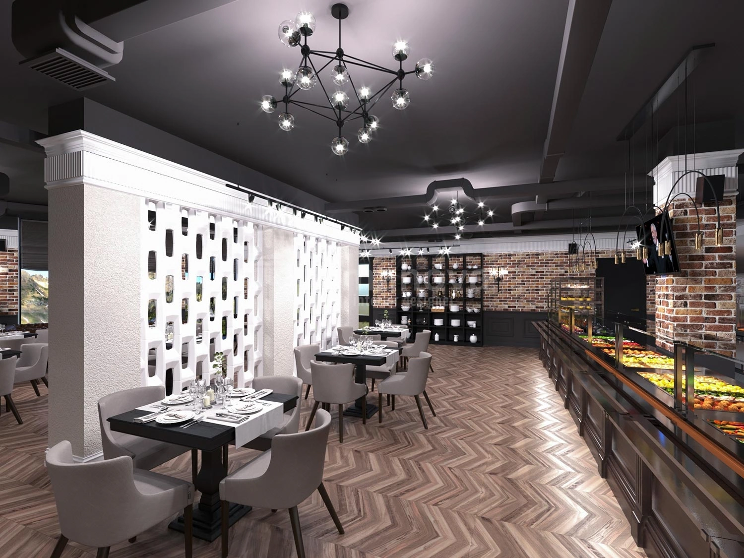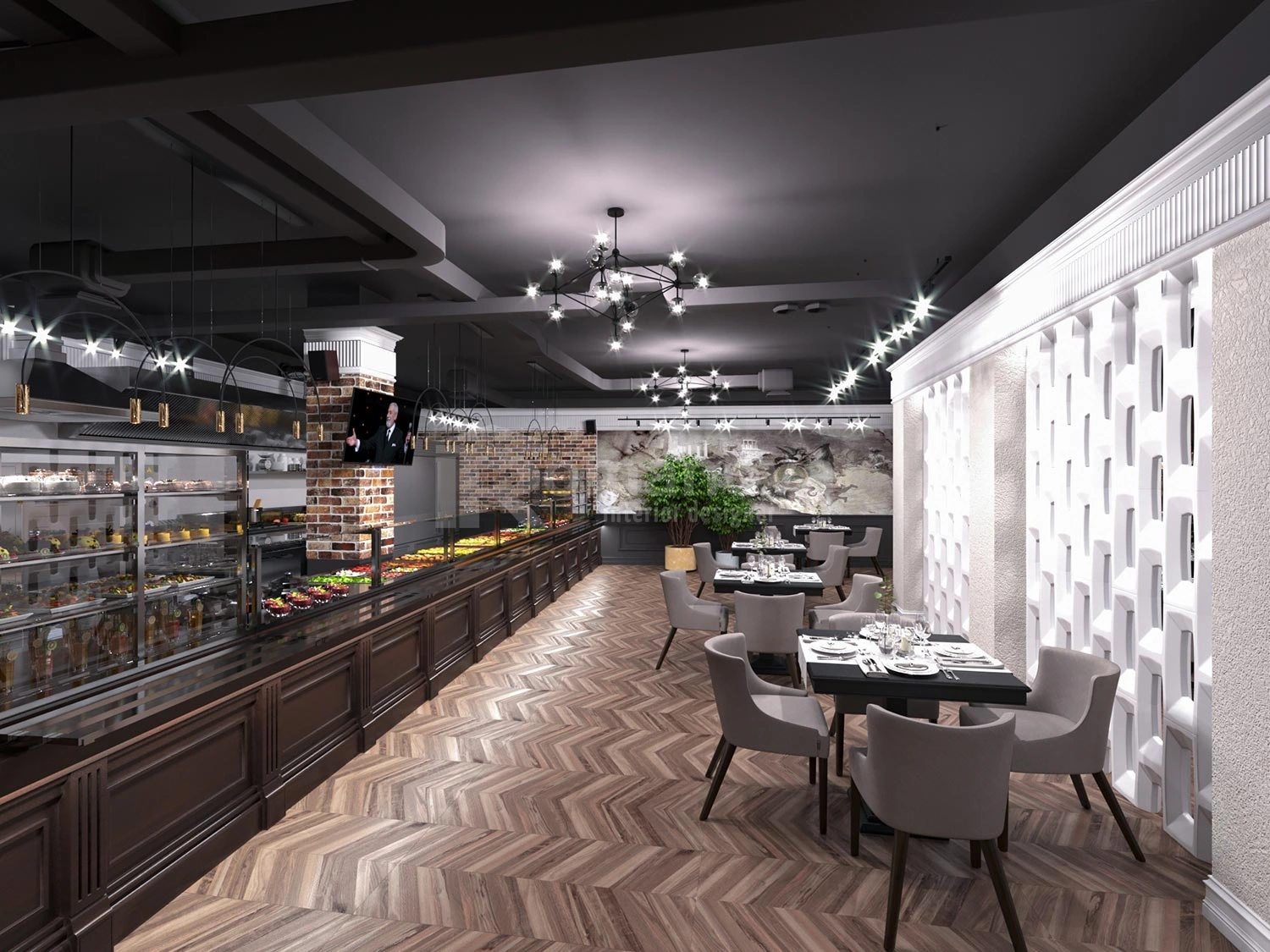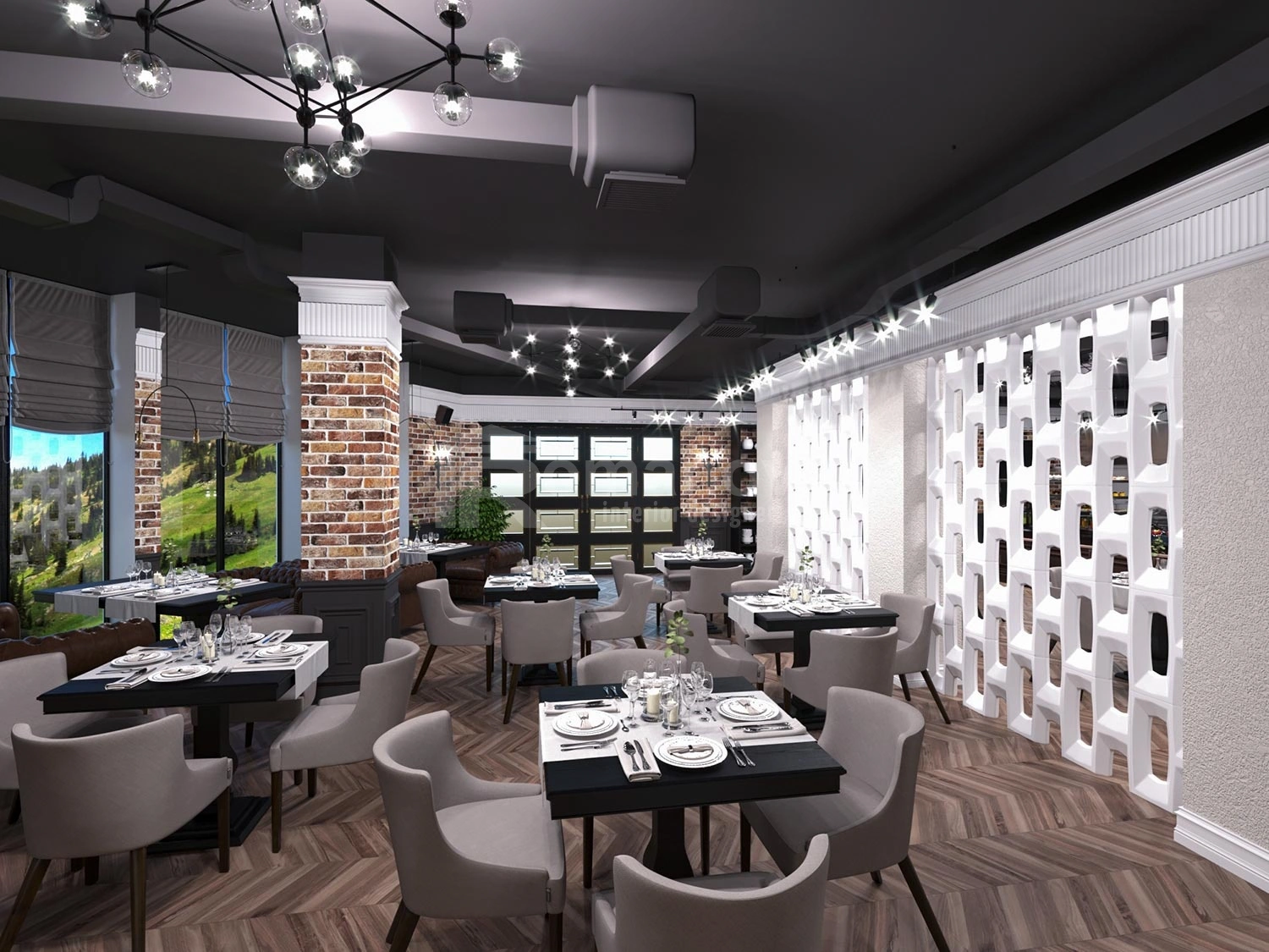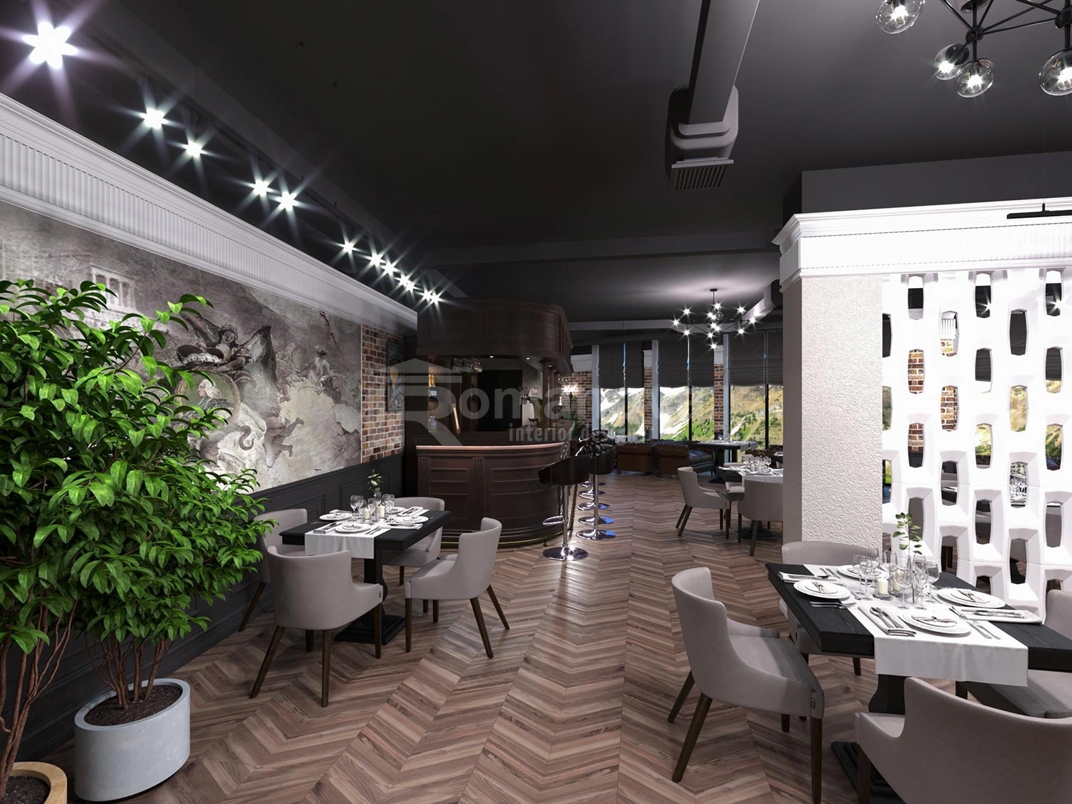 Элитное строение в современном стиле расположено в знаменитых горах Казбек – это новый и современный по дизайну отель. Владелец этого отеля обратился к дизайнеру интерьера Ирине Романовой с просьбой спроектировать интерьер стильным, современным, по европейски помпезным, немного строгим и в то же время нарядным, располагающим к приятному отдыху в горах. Цветовая палитра для оформления пространства должна иметь фоновую светлую основу с тёплыми тёмными акцентами.
