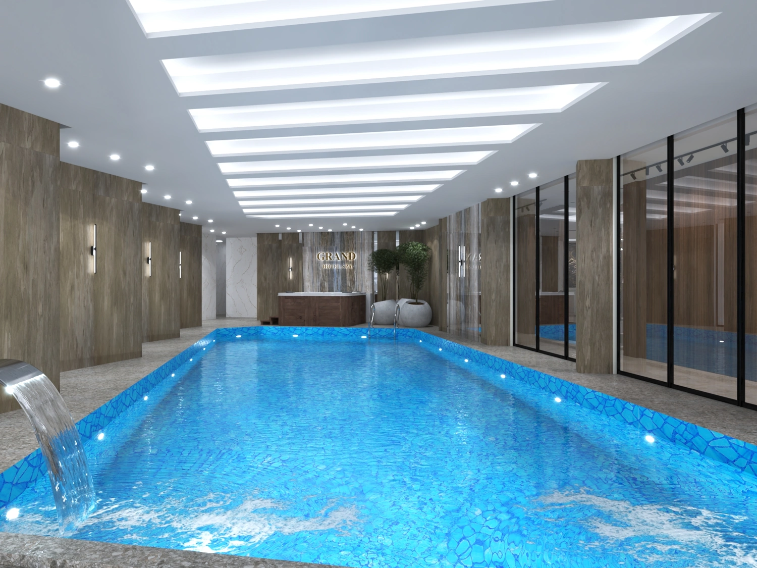 Отель по площади очень большой и конечно помещений общего пользования в нём много и все они с совершенно разным назначением – это холл, бассейн, конференц зал, массажный кабинет, сауна, кофейня, ресторан и ещё много разных помещений предназначенных как для гостей, так и для персонала отеля.