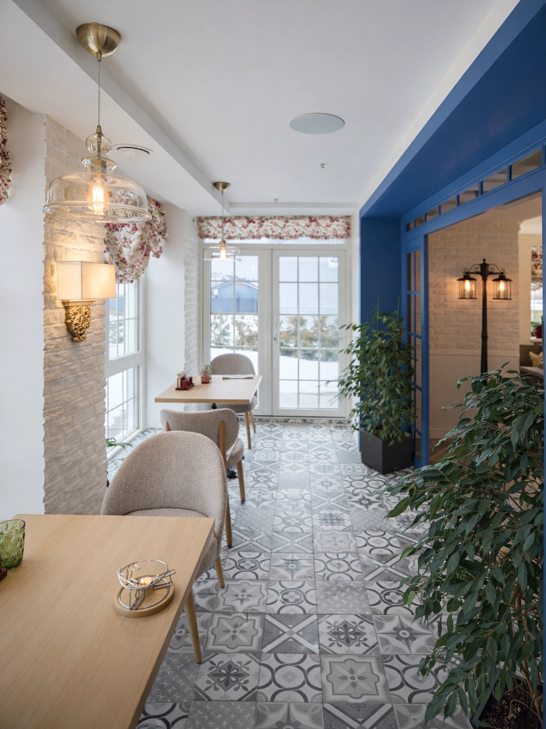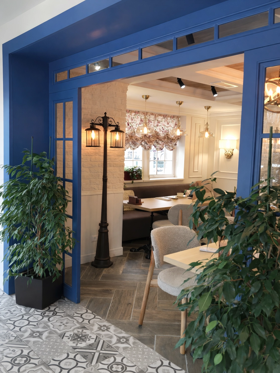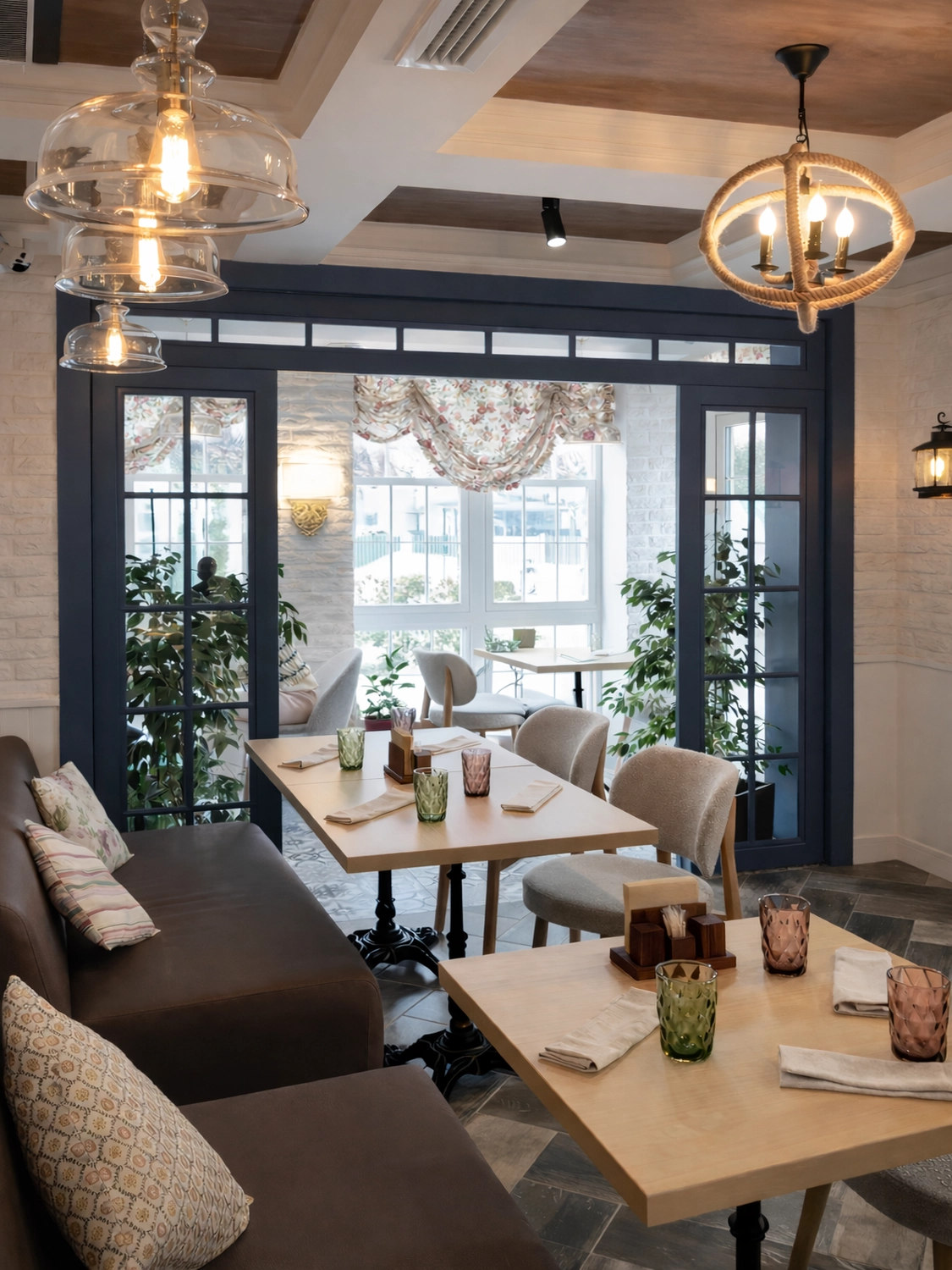 Интерьер двухэтажного кафе-кондитерской пекарни в стиле прованс с элементами стиля лофт