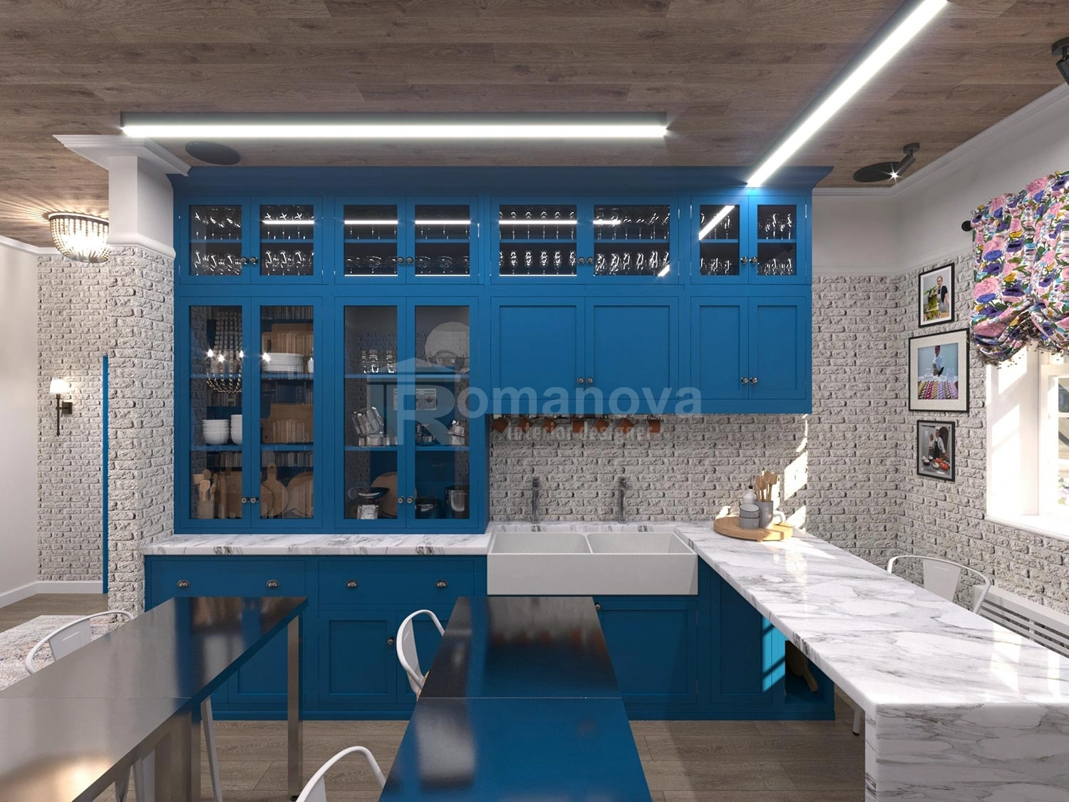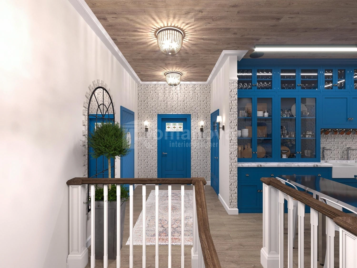 Частный дом расположен в ближайшем Подмосковье в уютном месте – это большой Коттеджный Посёлок городского типа «Мечта». Хозяева этого небольшого дома молодая пара с тремя детьми, приобрели его для осуществления своей давней мечты, создать очень уютное и радушное кафе-кондитерскую со своей пекарней собственного производства различных изумительных кондитерских десертов. Уже не первый раз пара обращается к дизайнеру интерьера Ирине Романовой за помощью в создании интерьера. В этот раз ребята попросили оформить пространство этого двухэтажного дома сочетая два стиля прованс и лофт.