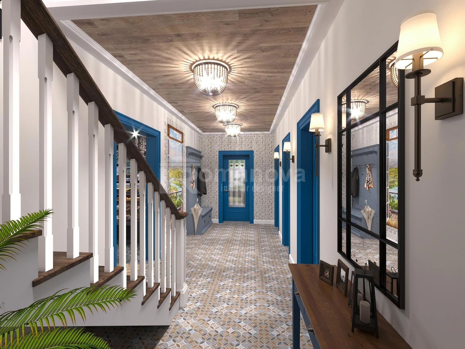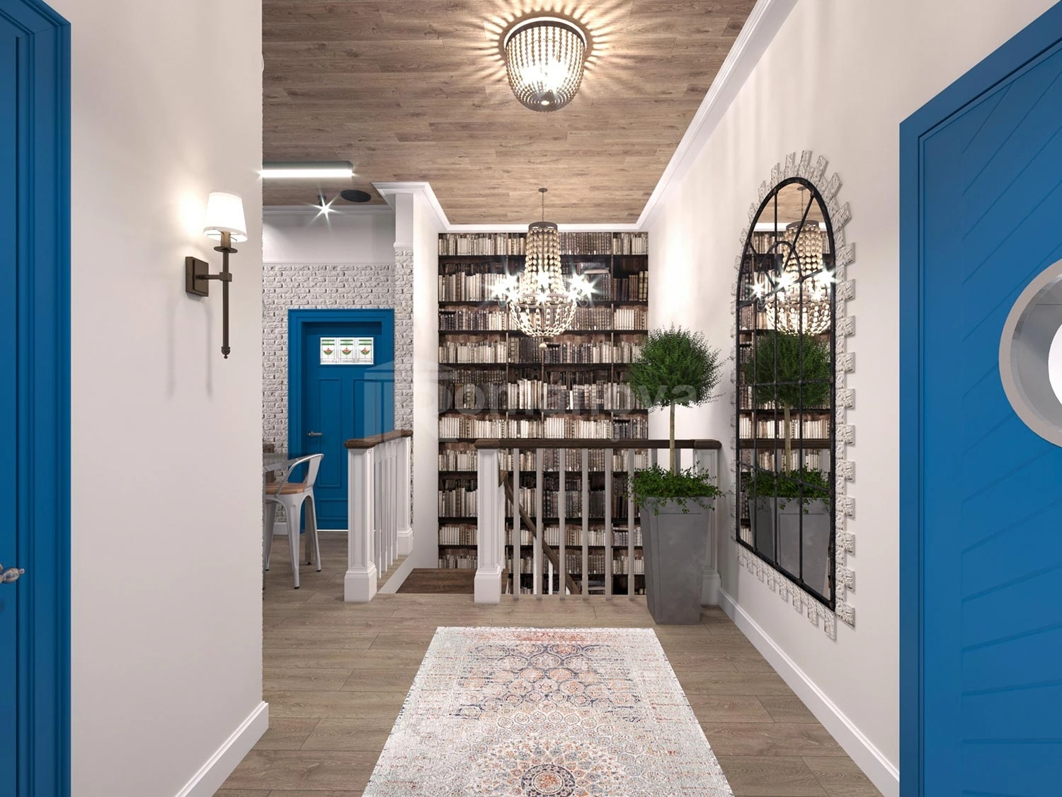 Основной идеей было декорировать все помещения в лёгком и ненавязчивом стиле прованс и дополнить его более графичным и брутальным стилем лофт, который должен прослеживаться только лишь в некоторых деталях интерьерного убранства, например, светильниках и некоторой мебели.