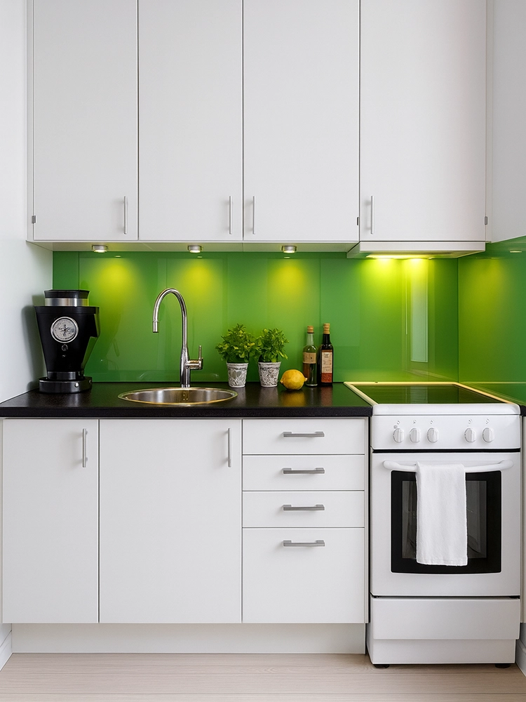 1 вариант: Белые стены и зеленые акценты
