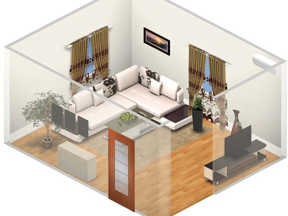 Расстановка мебели: гостиная с двумя окнами