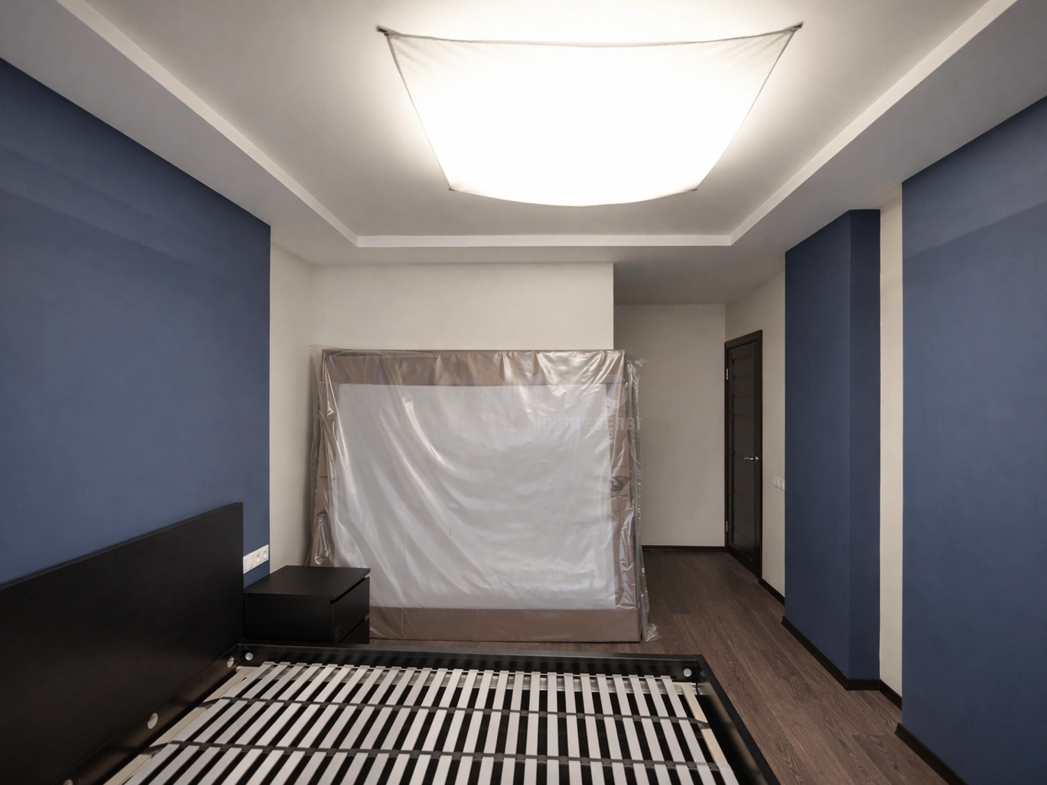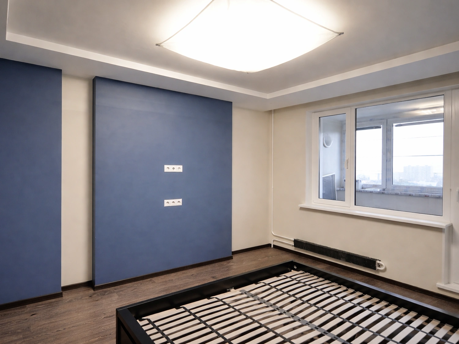 Авторский надзор делает дизайнер интерьера Ирина Романова, поэтому особое внимание уделялось качеству малярных работ. Стыки цветов, примыкание потолочного плинтуса, укладка напольного покрытия — все выполнено безупречно. Потолочный светильник с текстильным рассеивателем дает мягкий, рассеянный свет, комфортный для глаз.
