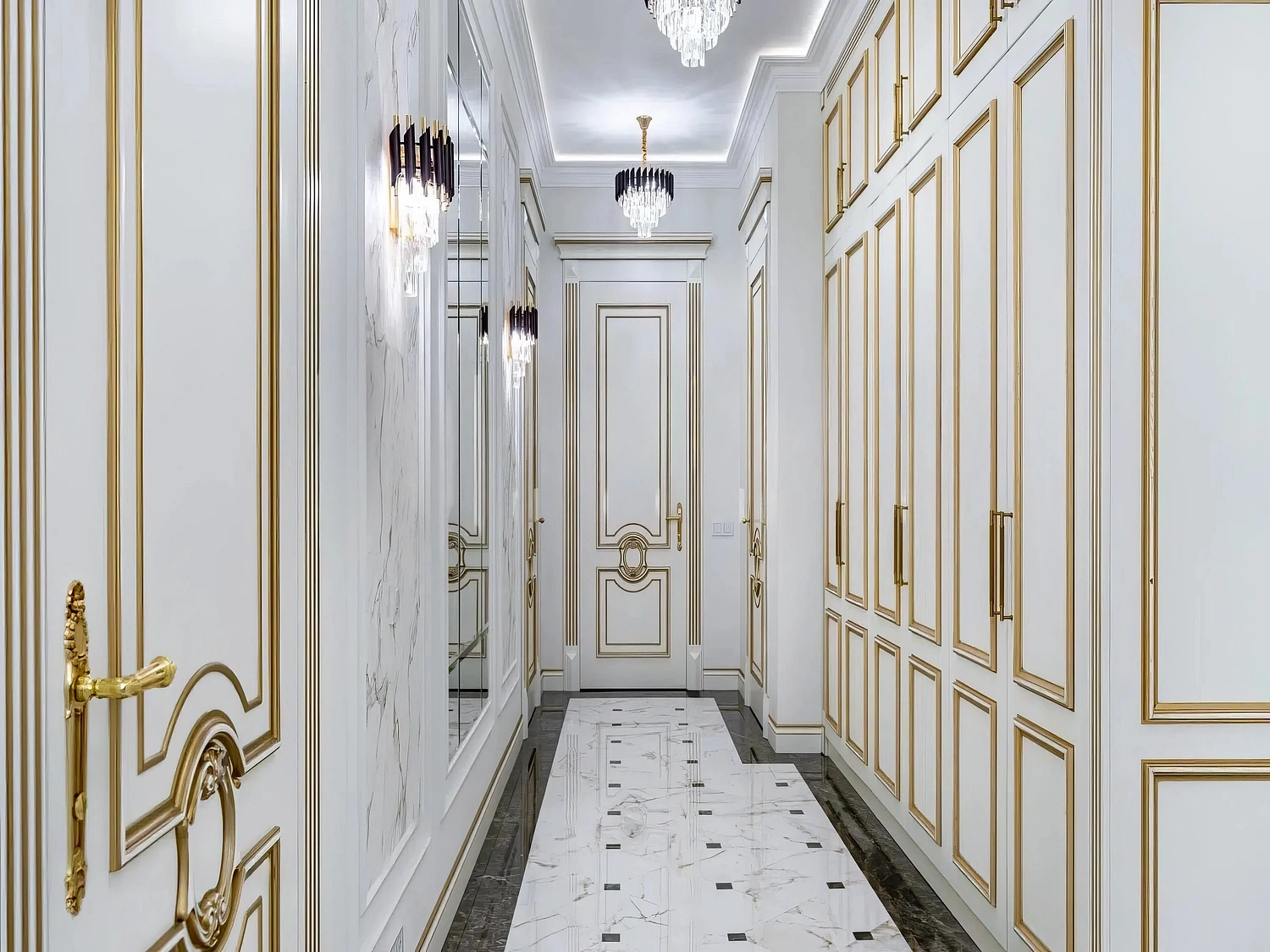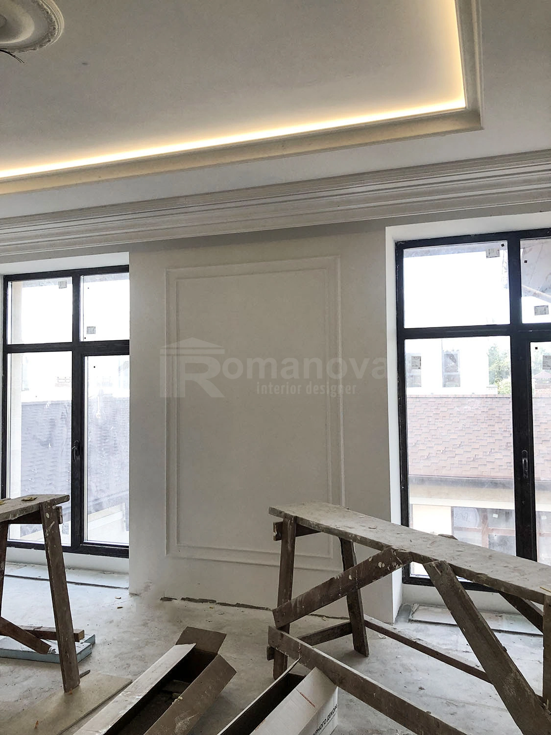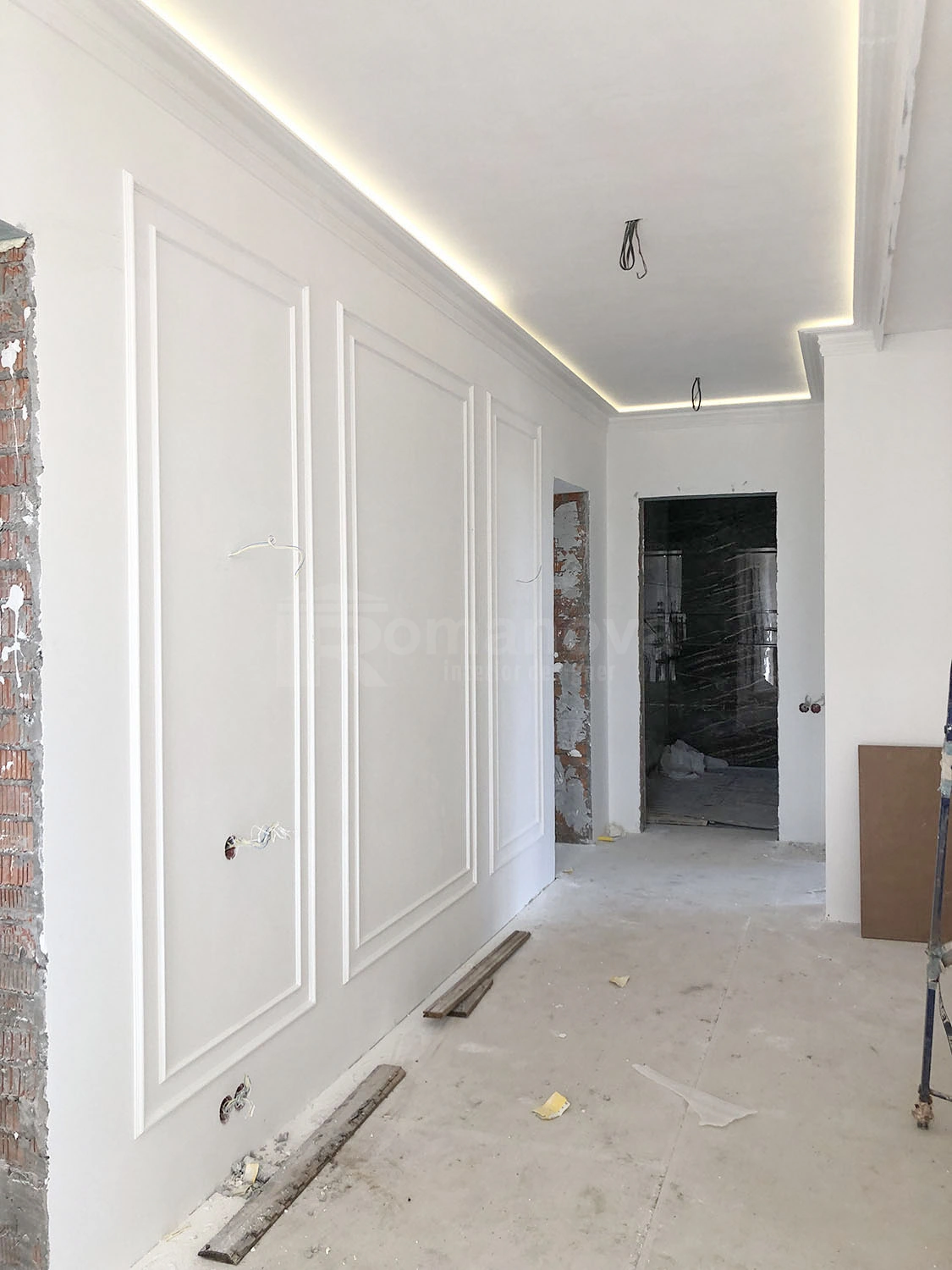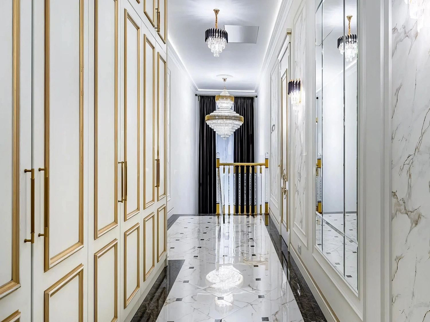 Проект ремонта дома в коттеджном поселке Ренессанс Парк выполнен в стиле неоклассики, который сочетает в себе элегантность и простоту классического стиля с современными элементами и материалами.