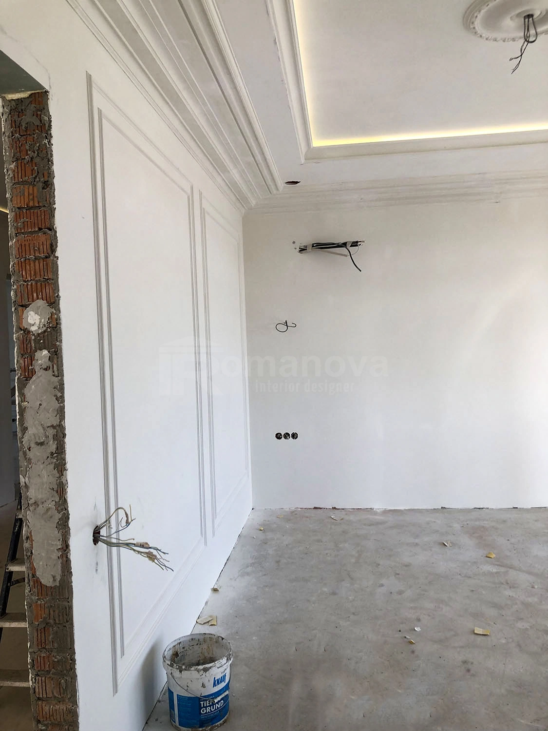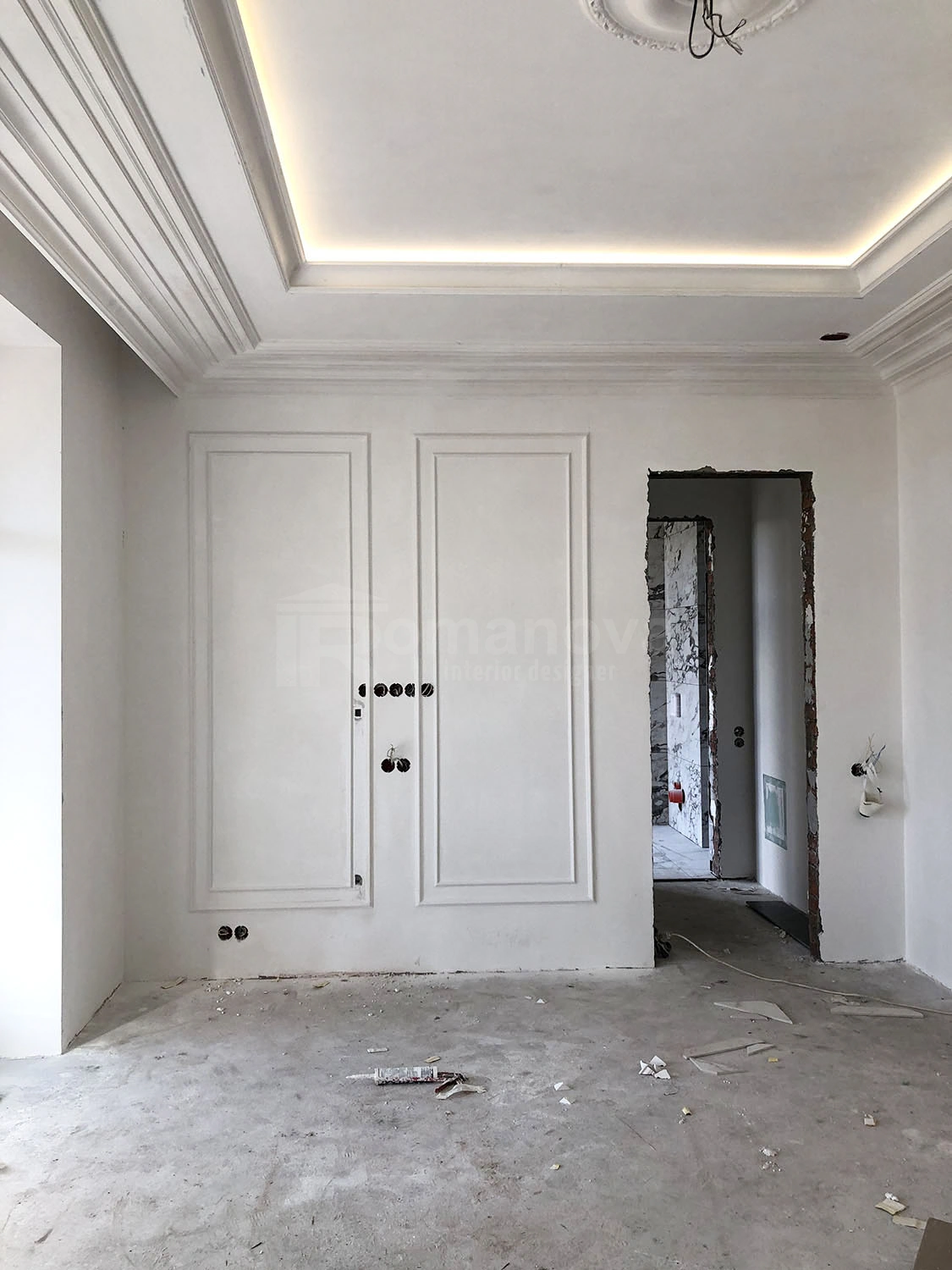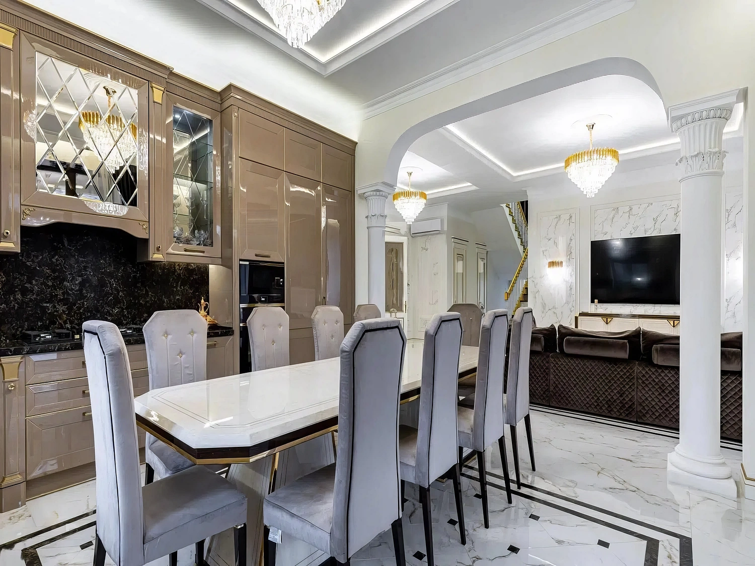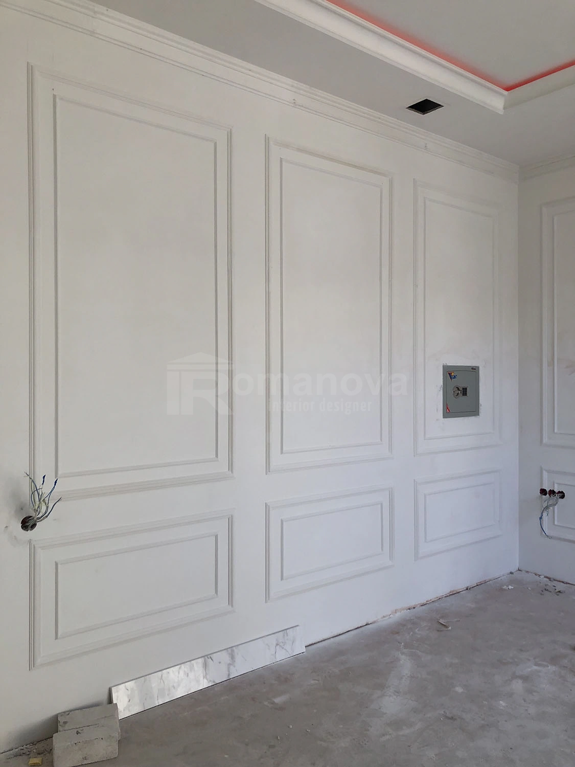 Проект ремонта дома в коттеджном поселке Ренессанс Парк выполнен в стиле неоклассики, который сочетает в себе элегантность и простоту классического стиля с современными элементами и материалами.