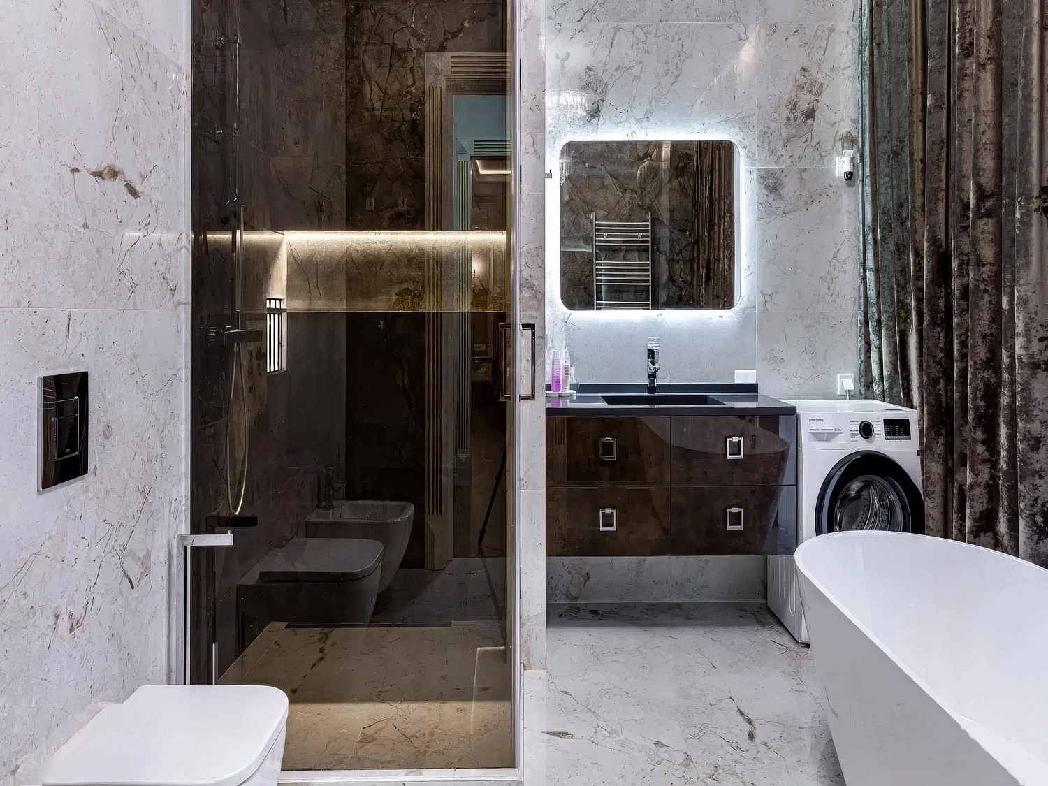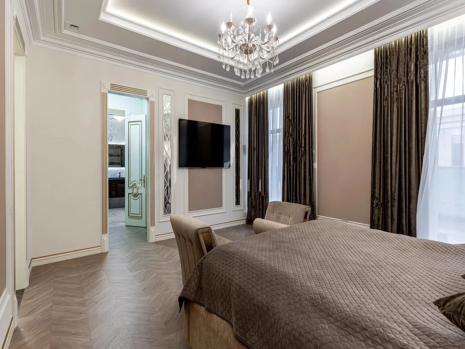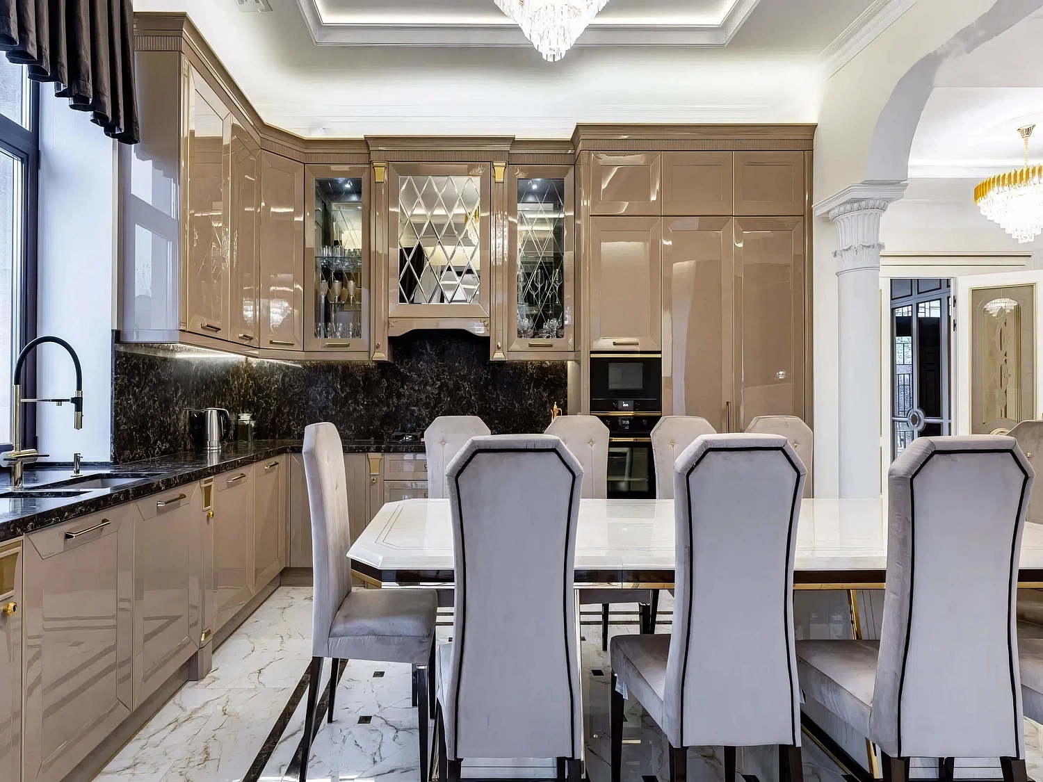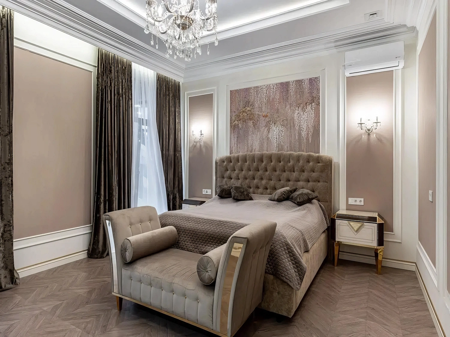 Проект ремонта дома в коттеджном поселке Ренессанс Парк выполнен в стиле неоклассики, который сочетает в себе элегантность и простоту классического стиля с современными элементами и материалами.