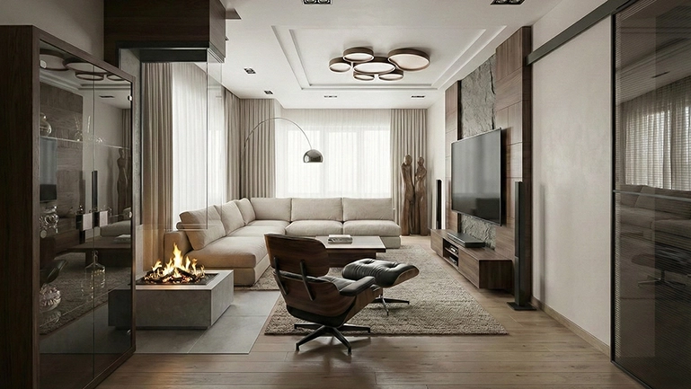 Заказчики хотели получить респектабельное, но при этом легкое и функциональное пространство, лишенное вычурности. Идеальным решением стал грамотный дизайн интерьера в стиле современного модерна. Это направление диктует строгие требования к качеству исполнения: здесь нет лишнего декора, за которым можно скрыть строительные огрехи. Идеально ровные линии, теневые профили, обилие натурального камня и дерева требовали ювелирной точности от каждого мастера. Вся реализация легла на плечи моей личной строительной бригады по заранее утвержденному дизайн-проекту, что гарантировало стопроцентное совпадение ожиданий и результата.